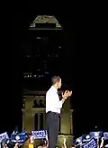 On February 10, 2007, Barack Obama, then-junior United States senator from Illinois, announced his candidacy for the presidency of the United States in Springfield, Illinois. Obama announced his candidacy at the Old State Capitol building, where Abraham Lincoln had delivered his "House Divided" speech.[1] Obama was the main challenger, along with John Edwards, to front-runner Hillary Clinton for much of 2007. He had only recently emerged as a national figure in Democratic politics, having delivered the DNC keynote address just three years prior and won his Senate election shortly thereafter.