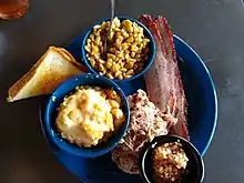 The first ingredient in the barbecue tradition is the meat. The most widely used meat in most barbecue is pork, particularly pork ribs, and also the pork shoulder for pulled pork.[4] In Texas, beef is more common, especially brisket.