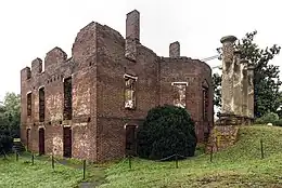 During the fire of 1884, everything except the exterior brick walls, the interior masonry partitions, and the columns of the porticoes were destroyed. The ruins have been stabilized and are maintained as a tourist attraction.[3]
