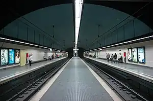 The Barcelona–Vallès Line (Catalan: Línia Barcelona-Vallès) is an unconnected standard gauge rapid transit and commuter railway line linking Barcelona with Sabadell and Terrassa via the Collserola mountain range, in Catalonia, Spain. Its name refers to the Catalan historical region of Vallès, whereby most part of the line runs. Plaça de Catalunya station serves as the Barcelona terminus of the line, where almost all its trains either start or terminate. The line then continues northwards and branches off twice before leaving the city limits. Its main route splits in two in Sant Cugat del Vallès, forming two major branches to Sabadell and Terrassa. It has 40 passenger stations in operation and a total line length of 48.1 kilometres (29.9 mi).