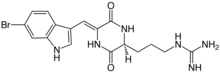 Barettin is the major compound in the deep-sea sponge Geodia barretti.[3] It was isolated for the first time in 1986 by Göran Lidgren, Lars Bohlin and Jan Bergman at Uppsala University, Sweden[1] but the correct chemical structure was determined later in 2002.[2] Barettin is written with one 'r' because the authors misspelled Geodia barretti with one 'r' in the original paper.[1]