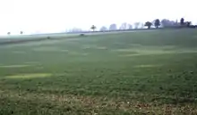 Patches of barley yellow mosaic virus in field of barley, cultivar Panda, growing at Hemel Hempstead, UK.