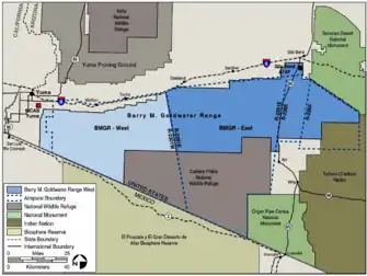 The Barry M. Goldwater Air Force Range or Barry M. Goldwater Range (BMGR), formerly known as Luke Air Force Range,[1] is a bombing range in the U.S. state of Arizona, between the Mexico–United States border and Interstate 8 straddling the Cabeza Prieta National Wildlife Refuge and the Tohono Oʼodham Nation.