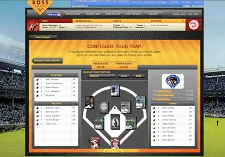 Baseball Boss (also known as BaseballBoss and abbreviated to BBB) was a web based, free online MMOG (massively multiplayer online game) baseball game published by Challenge Games.[1] Baseball Boss is also an official licensee of Major League Baseball Advanced Media. The game combined virtual baseball card collecting and fantasy baseball simulation through head to head completion against historical teams and other online players. The game was released on July 10, 2008. Players were given cards of real baseball players from all of baseball's ages (card sets range from 1907 to the 2009 MLB All Star Game) to create teams of players using their cards. Players then attempted to move up "classes," from Rookie to Hall of Fame by defeating other players' teams through simulated challenges. Players spent tickets, earned for sending challenges to other teams, to purchase new packs of cards from the Market or new cards from other users in the Auction House.[2] Baseball Boss features two brands of cards, the "National" base brand and the "Spire" premium brand. In addition to playing against other online users, Baseball Boss allowed users to collect entire sets or a group of their favorite cards in a way that resembled virtual baseball card collecting, using "Shoeboxes".[3]