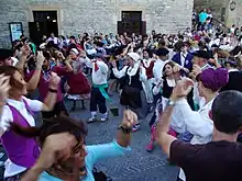 As with their language, the Basques are clearly a distinct cultural group in their region. They regard themselves as culturally and especially linguistically distinct from their surrounding neighbours. Some Basques identify themselves as Basques only whereas others identify themselves both as Basque and Spanish.[68] Many Basques regard the designation as a "cultural minority" as incomplete, favouring instead the definition as a nation, the commonly accepted designation for the Basque people up to the rise of the nation-states and the definition imposed by the 1812 Spanish Constitution.