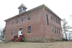 The Bates School is a historic former school building at 1074 Bates School Road in Bates, Arkansas. It is a two-story brick building with a hip roof and Colonial Revival styling. Its main facade has a central entrance in a recessed segmented-arch opening, which is flanked on either side by windows set in similar openings. At the second level there are four windows two directly above the lower flanking windows, and two above the entrance. A cupola is set near the base of the roof above the entrance; it is square, louvered on all sides, and topped by a pyramidal roof. The school was built in about 1916, and was in use serving as a public school until 1964.[2]