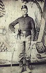 The battery's initial enlistments expired December 19, 1864, but these veterans were not mustered out of service until December 24, 1864, at Louisville, Kentucky.[120] New recruits were brought into replace those who had been discharged; these continued to serve until July 15, 1865, when they were discharged near Chattanooga, Tennessee.[121][122]