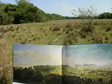 The site of the battlefield in 2013 with (inset) Cándido López's painting of the encounter