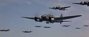 - ↑ The film's producers did not have access to real or replica Bf 110 or Junkers Ju 88 aircraft, so the Junkers were not mentioned and the Heinkels are described as unescorted.