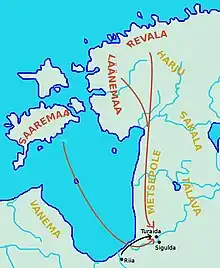 - ↑ Mäesalu, Ain (1997). Eesti ajalugu (1. osa). Avita. p. 168. ISBN 9985-2-0043-8.