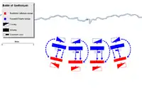 The site of the Battle of Qadisiyyah, showing Muslim army (in red) and Sassanid army (in blue)