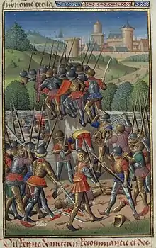 Knowledge of the battle endured into the Middle Ages. It is written of in the 15th-century poet John Lydgate's work, The Fall of Princes, and illustrated in Vincent de Beauvais' Speculum Historiale.[37][38]