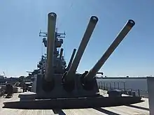 A triple 16-inch/50-caliber Mark 7 gun turret aboard USS New Jersey