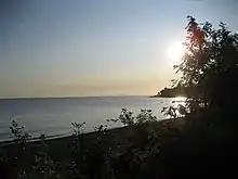 The Beach Strip is a 4-mile, (quarter mile wide), strip that stretches from Spencer Smith Park in Burlington to Confederation Park in Hamilton. This strip of land was known to the aboriginal people in the area as Daonasedao, which translates to "where the sand forms a bar".[6] Thousands of years ago, the beach was formed as a baymouth barrier bar from sand deposited by waves breaking in deep water offshore. As the process continued, a dune gradually developed and eventually a continuous strip of sand was formed, creating an embayment separated from Lake Ontario. Since then, the area has been altered considerably by fill used for construction of the Burlington Bay James N. Allan Skyway, the Queen Elizabeth Way and the Canada Centre for Inland Waters. Hamilton's deep sea port is accessed by ship canal through the beach strip into the harbour and is traversed by two bridges, the QEW's Burlington Bay James N. Allan Skyway and the lower Burlington Canal Lift Bridge.[7]