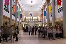 The construction of Bear Creek was completed January 2001 by Bondfield Construction for the Simcoe County District School Board, costing CAD18,100,000. It was designed by Zawadzki Armin Stevens Architects. The two-storey school has an area of 167,570 square feet (15,568 m2), and includes athletic facilities such as a gymnasium, exercise room, and a running track on the second floor. The school also features specialized classrooms, a round cafetorium, a food court area, and a large forum. Exterior features include a large parking area, an outdoor track and a large sports/football field.[5] Nine years later, in 2010, a one-storey, 25,327 square feet (2,353.0 m2) area expansion added six new classrooms, including two woodshops, a dance studio, and a hospitality suite, amongst other facilities. The CAD7.5 million expansion budget also covered renovations to the original part of the school.[6]
