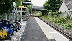 Following a local campaign, the station was reopened on 15 April 2002.[4] A new single platform, shelter and car park were built in a £250,000 project.[12] The platform is the shortest in Great Britain: at the length of 15.06 metres (49 ft 5 in),[13] it is shorter than a single carriage of a Class 158 train that is usually used on this line.