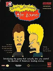 Beavis and Butt-Head (advertised as MTV's Beavis and Butt-Head: The Game) are three tie-in video games based on the animated television series of the same name that were released by Viacom New Media in 1994 for the Super NES, Genesis/Mega Drive and Game Gear. The three versions differ from each other, sharing only the basic premise involving the titular characters searching for tickets to a Gwar concert. The games were advertised as featuring music by the band. A fourth version was later released for the Game Boy by GT Interactive in 1998 without the Gwar tie-in.