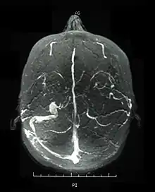 Magnetic resonance venogram demonstrating occlusion of the left sigmoid and transverse sinuses