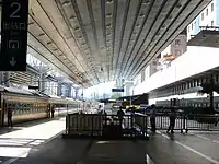 Trains used platform 1 of Beijing West railway station, which was connected to the check hall for this particular through train service. Passengers coming from or going to Hong Kong clear Chinese immigration and customs in the hall. The part of the platform between the hall and the passenger cars for Hong Kong is cordoned off by police.