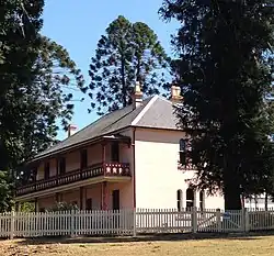 The earliest form of the house appears to be a single-storey cottage, with a jerkin head roof and dormer windows, a verandah with timber posts, a fretted valance and stone flagging. ("Hawkesbury vernacular"). This cottage and the separate kitchen block are thought to date from the Robertson's occupation of the property, between c.1835-1838. The present homestead was a modification of the original cottage c.1890, which removed the jerkin head roof and added a second storey. Additions were made to the east also. The verandah was also extended to form a double height verandah and rion lace columns and balustrade added. The French doors to the first floor verandahs and the Venetian windows to the eastern elevation appear to have been added c.1890. The original window openings on the first floor appear to have been extended to the floor. The area between the house and the kitchen block at first floor level has been extended from the north verandah of the house to form a room known to generations of the Pearce family as the School Room, c.1890s.[1]