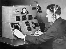 The directional qualities of the radiogoniometer work in both directions; it can be used to determine the direction of an incoming signal, or change the direction of a transmission. During early experiments, this capability was used to produce a radio signal that swept the sky like a lighthouse beam, allowing conventional radio receivers to determine their location by timing the passage of the signal. A typical solution was to broadcast a specific start signal, often Morse code, to start the sweep, and the slowly sweep a steady signal after that. The operator timed from the end of the start signal to the maximum in the continuous tone, and then divided by the rotation rate to determine the angle.[10]