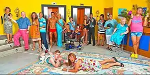 Prior to the fifth series airing, Crissy Rock decided to leave in order to appear in the eleventh series of I'm a Celebrity...Get Me Out of Here!, though did make a one-off return.[24] As a result, Sherrie Hewson joined the cast, playing the role of Joyce Temple-Savage, the new manageress of the Solana.[25] Bazely, Drysdale and Griffiths were the only cast members of the fourth series to not return; Michelle Butterly was then cast in the role of Trudy, a character who accompanies Sam on holiday, thus acting as a replacement for Drysdale.[23] All the remaining cast members returned.[23] Alba Ortega had a brief role in the series, portraying the role of Carmen, the new colleague of Kenneth, who now owns a hair salon within the Solana.[23] Asa Eliott, Elliott Jordan and Michael Fenton Stevens reprised their roles as himself, Jack and Sir Henry, respectively.[23] This was the only series to feature Butterly, the last time Noreen featured until series 7 and Sam featured until series 9, and the last series to feature Sachs.[23]