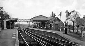 Bentley was the northern terminus of the Bentley and Bordon Light Railway, built in 1905 to serve the military camp at Bordon. Built with assistance of the British Army, the line closed to passengers in 1957 (remaining open to serve traffic to the Longmoor Military Railway in times of emergency) and closed to all traffic in 1966; the track was lifted later that same year.[1]