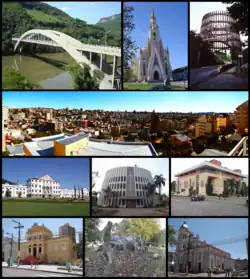 The city has changed names three times in history. Before the Italian immigration began, the place where the city downtown is located today was crossed by horsemen, and since there was well known north–south trail with a small wooden cross at the place, the name Cruzinha ("little cross") was used to name this region.[3] After a decree of the effective governor of the province in the 1870s, the area was renamed Colônia Dona Isabel ("Dona Isabel Colony"), after the Brazilian princess Isabel de Bragança.[4]