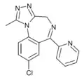 Alprazolam Xanax, Helex, Xanor, Trankimazin, Onax, Alprox, Misar, Restyl, Solanax, Tafil, Neurol, Frontin, Kalma, Ksalol, Farmapram1981 0.25, 0.5, 1, 2 0.5-11–3[16]11-13 [10–20][16]anxiolytic, antidepressant[17]
