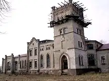 It was built in 1840 by Adolf Czapski and modified in 1885–1887. The palace in Neo-Gothic style consists of some parts with one or two floors, connected to a four-floor tower where the main entrance is situated.[3]