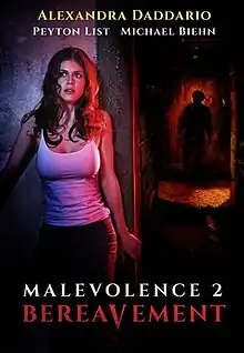 Bereavement (also known as Malevolence 2: Bereavement) is a 2010 American crime horror film directed by Stevan Mena and starring Michael Biehn, Brett Rickaby, Alexandra Daddario, Nolan Gerard Funk, and Spencer List. It serves as a prequel to 2004's Malevolence, and is the second installment in the titular film series. The plot take place chronologically to the previous installment, with the story centering around an abducted six-year-old boy (List) who is forced to bear witness to the crimes of a madman (Rickaby) for five whole gruesome years.