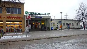 Friedrichsfelde Ost is a railway station in the Marzahn district of Berlin. The station is located north of the district border to Friedrichsfelde at the intersection of the route of the Prussian Eastern Railway with the Rhinstraße and is served by three lines of the Berlin S-Bahn.