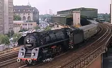After the final closure of the Anhalter Bahnhof in 1952, Bahnhof Zoo remained the only long-distance railway station operated by the Deutsche Reichsbahn of East Germany within West Berlin. On 28 August 1961, two weeks after the erection of the Berlin Wall, the new U-Bahn line U9 was opened below the U2, connecting the station with the transport network in the north-south direction.[4]