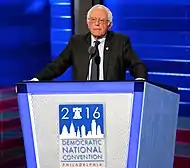 On July 22, 2016, various emails stolen by one or more hackers operating under the pseudonym "Guccifer 2.0"[24] from the Democratic National Committee (DNC), the governing body of the Democratic Party, were leaked and published, revealing bias against the Sanders campaign on the part of the committee and its chair, Debbie Wasserman Schultz.[25] Schultz subsequently resigned as DNC chair and was replaced by Donna Brazile, who was also implicated in the leaks and apologized to Sanders and his supporters. In the Democratic National Convention roll-call vote on July 26, 2016, Sanders received 1,865 votes (39% of the vote), which consisted of 1,848 pledged delegates won in primary and caucus contests (46% of the total) and 17 superdelegates (4%). After the roll call, Sanders put forward a motion to formally nominate Clinton, which passed by voice vote. Although Sanders lost, he and the political movement his campaign created succeeded in moving the Democratic Party platform as a whole to the left, including support for a $15 minimum wage, marijuana legalization, the abolition of capital punishment, and criminal justice reform.[26]