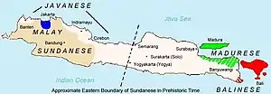 Betawi Malay is a popular informal language in contemporary Indonesia, used as the base of Indonesian slang and commonly spoken in Jakarta TV soap operas and some animated cartoons (e.g. Adit Sopo Jarwo).[2] The name "Betawi" stems from Batavia, the official name of Jakarta during the era of the Dutch East Indies. Colloquial Jakarta Indonesian, a vernacular form of Indonesian that has spread from Jakarta into large areas of Java and replaced existing Malay dialects, has its roots in Betawi Malay. According to Uri Tadmor, there is no clear border distinguishing Colloquial Jakarta Indonesian from Betawi Malay.[3]