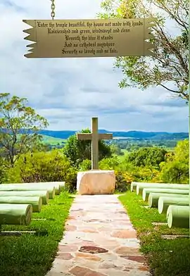 Bexhill is well known for its pleasant open air cathedral which is managed by volunteers of the Uniting Church. The "cathedral" has attractive native gardens and overlooks a large length of valley and hills along Coopers Creek. It is well used for wedding services and special events.