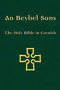 A translation of the whole New Testament, by Nicholas Williams, was published in 2002 by Spyrys a Gernow; it used Unified Cornish Revised orthography. His complete translation of the Bible into Cornish, An Beybel Sans, was published in 2011 by Evertype. It was translated by Nicholas Williams, taking a total of 13 years to complete.[3][4] Having completed the New Testament, Williams translated the Old Testament into Cornish from a variety of sources, including Hebrew and Greek texts,[5] starting with Leviticus, which he regarded as one of "the boring bits".[6]