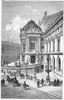 From the time of the creation of the Paris Opera in 1669 until the middle of the 19th century there was no official entity in charge of the preservation and management of archival materials produced by the activities of the Opera and its associated theatre. The creation of an archives service and a library was integrated into the project entrusted to the architect Charles Garnier for the construction of a new opera house to replace the Opera's former theatre, the Salle Le Peletier. Thus the current Paris Opera Library-Museum traces its origin to two former services of the Opera, the archives and the library, each created in 1866.[2] At that time, the Opera director became an entrepreneur. Expenses exceeded the receipts, and the government needed a strong man to run the establishment but was afraid that the archives would be sold to generate money.