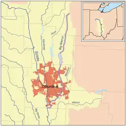 Map of Big Walnut Creek highlighted within the Scioto River watershed.