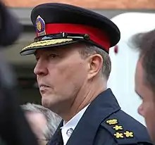 In 2013, Blair came into conflict with Toronto Mayor Rob Ford after confirming to the media that the police had obtained a video of the mayor smoking what appeared to be crack cocaine. Blair said he was "disappointed" in the mayor.[19] As the investigation into the mayor and his friend Alessandro Lisi continued, Mayor Ford dared Blair to arrest him and accused him of wasting money in their surveillance of Ford.[20] Rob Ford's brother, Councillor Doug Ford, claimed that Blair had "gone rogue" and violated the Police Services Act when speaking out about the mayor during the ongoing police investigation.[21] On August 11, 2014, Blair served Councillor Doug Ford with notice of defamation. Doug Ford accused the police chief of using the suit as "payback" in retaliation against the mayor for not extending his contract, but apologized for his comments shortly afterwards.[22]
