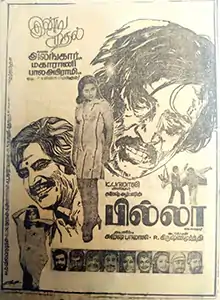 Billa is a 1980 Indian Tamil-language action thriller film directed by R. Krishnamoorthy and produced by Suresh Balaje. The film stars Rajinikanth, Sripriya and Balaji. It is a remake of Don, a 1978 Hindi film written by Salim–Javed and starring Amitabh Bachchan. The film revolves around Billa, a powerful ganglord who is fatally wounded during an encounter with the police. Wanting to uncover Billa's accomplices, DSP Alexander trains a lookalike simpleton Rajappa to pose as Billa and infiltrate the gang. The rest of the film deals with how Rajappa learns more about Billa's gang, and tries to get all of them arrested.