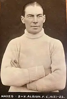 William Edward Hayes (8 November 1895 – after 1928) was an English professional footballer who played as a goalkeeper. He began his senior career with Preston North End, where he made 10 league appearances, all of them in the 1914–15 season. During the First World War, he played one match as a guest for Burnley.[2] After the war, Hayes played for several clubs including Brighton & Hove Albion and Southend United, playing more than 250 league matches. Towards the end of his career, he played for a number of non-League sides.[3]