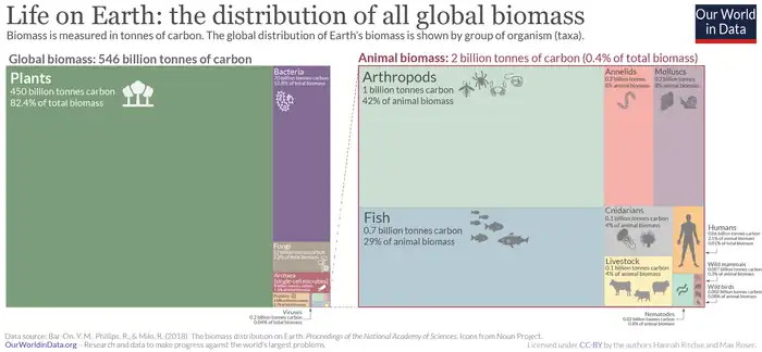 - ↑ Gosh, Iman (20 August 2021). "Misc All the Biomass of Earth, in One Graphic". Visual Capitalist. Retrieved 16 December 2021.