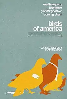 Birds of America (originally titled The Laws of Motion) is a 2008 American comedy-drama independent movie directed by Craig Lucas, written by Elyse Friedman, and starring Matthew Perry. The film premiered at the 2008 Sundance Film Festival on January 24, 2008,[1] It was produced by Plum Pictures.[2]