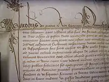 There are a number of copies of the foundation charter in the Dunbar Archives at the University of Aberdeen.[3] An English translation at the beginning of the charter is as follows: