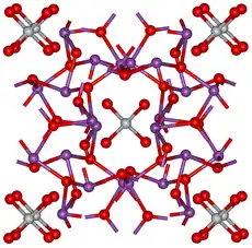 Bismuth silicon oxide is a solid inorganic compound of bismuth, silicon and oxygen. Its most common chemical formula is Bi12SiO20, though other compositions are also known. It occurs naturally as the mineral sillénite and can be produced synthetically, by heating a mixture of bismuth and silicon oxides. Centimeter-sized single crystals of Bi12SiO20 can be grown by the Czochralski process from the molten phase. They exhibit piezoelectric, electro-optic, elasto-optic, photorefractive[4] and photoconductive properties, and therefore have potential applications in spatial light modulators, acoustic delay lines and hologram recording equipment.[1] Bi12SiO20 can be obtained as a whitish powder with band gap of approximately 3.2 eV starting from bismuth subcarbonate and silica in presence of ethyleneglycol.[5] 29Si solid-state NMR is used to proof that the Si(IV) cations are sharing oxygen atoms with the Bi(III) cations. The 29Si chemical shift (δ) in Bi12SiO20 is −78.1 ppm. Unlike the bismuth oxide, the presence of the acidic Si(IV) cations avoid the reactivity with CO2.