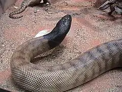 The black-headed python (Aspidites melanocephalus)[3] is a species of snake in the family Pythonidae (the python family). The species is endemic to Australia. There are no subspecies that are recognized as being valid.