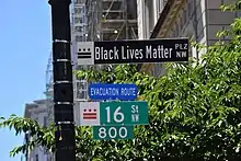 - ↑ Belfiore, Emily (June 5, 2020). "DC Mayor Changes Street Name to Black Lives Matter Plaza". E! Online. Retrieved June 7, 2020.