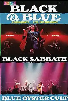 Black and Blue is a live video by hard rock bands Black Sabbath and Blue Öyster Cult filmed during their 1980 co-headlining tour of the United States, known as the "Black and Blue Tour". The film was originally released to theaters in 1981 as a concert film. It was later released on VHS, Betamax and laserdisc video format, but has not been officially released on DVD.[1][2]