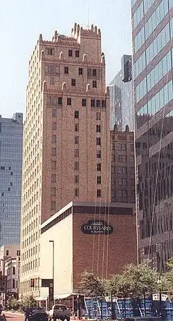 The Blackstone Hotel is the tallest hotel in downtown Fort Worth, Texas, at 268 ft (82 m) tall. Located on the corner of Fifth and Main Streets, it is noted for its Art Deco design with terracotta ornamentation and setbacks on the top floors. The hotel was constructed in 1929 and operated for over 50 years before it sat vacant for nearly 20 years. The Blackstone Hotel guest list is full of notable people including Presidents of the United States: Harry S. Truman, Dwight D. Eisenhower, John F. Kennedy, Lyndon B. Johnson, and Richard M. Nixon. The hotel was also host for a few movie stars such as Bob Hope, Clark Gable, and Elvis Presley. It was added to the National Register of Historic Places (Building #84001961) on February 2, 1984. The building was restored in the late 1990s and is still in use today as the Courtyard Fort Worth Downtown/Blackstone, although it is still known as the "Blackstone Hotel" to those who live in or have ties to Fort Worth.